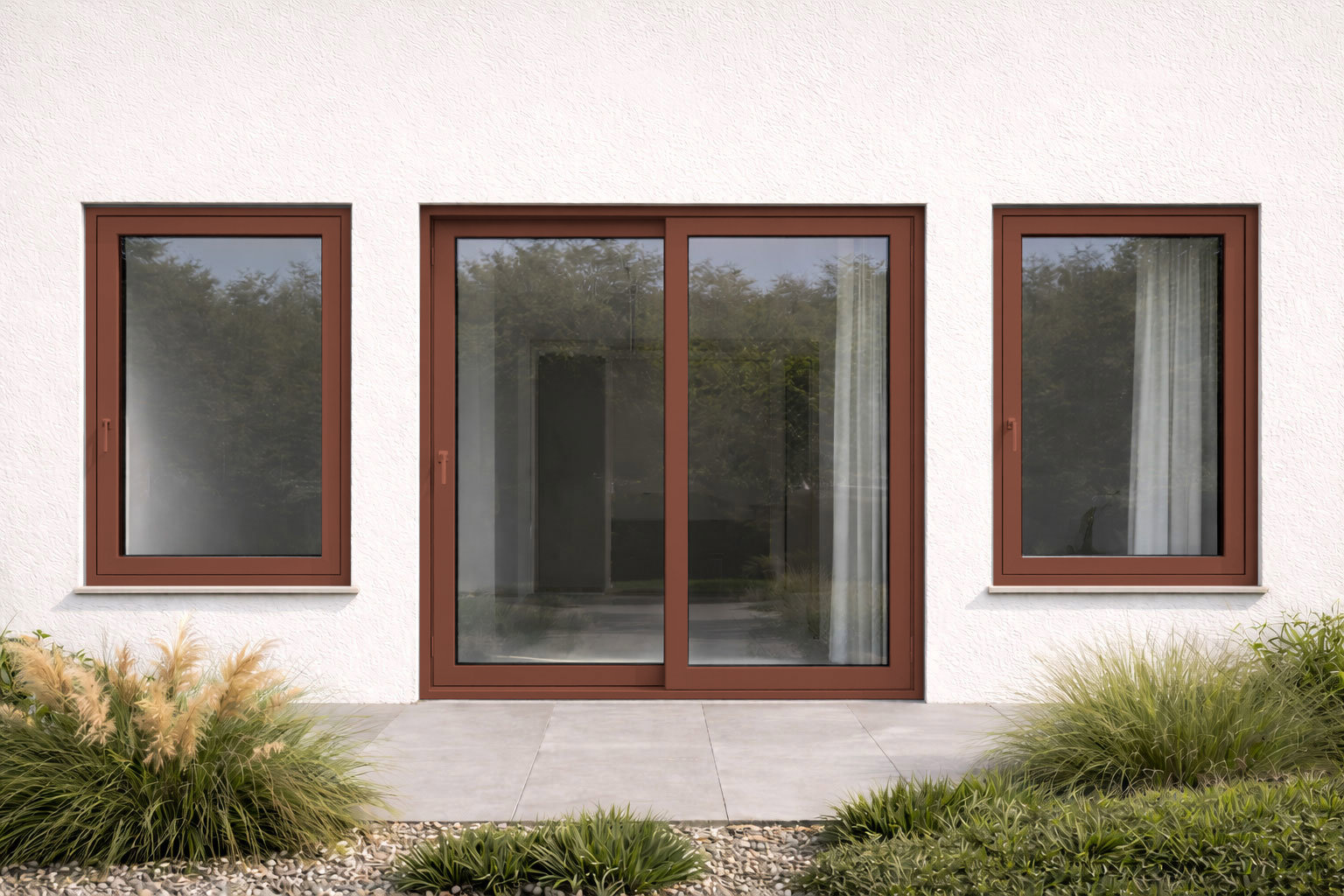 A metallic brown with a bright, copper-like shimmer; the metallic copper finish catches the sun to create a bright shimmering glow, turning into a flat bronze in the dark, used for premium architectural trim.